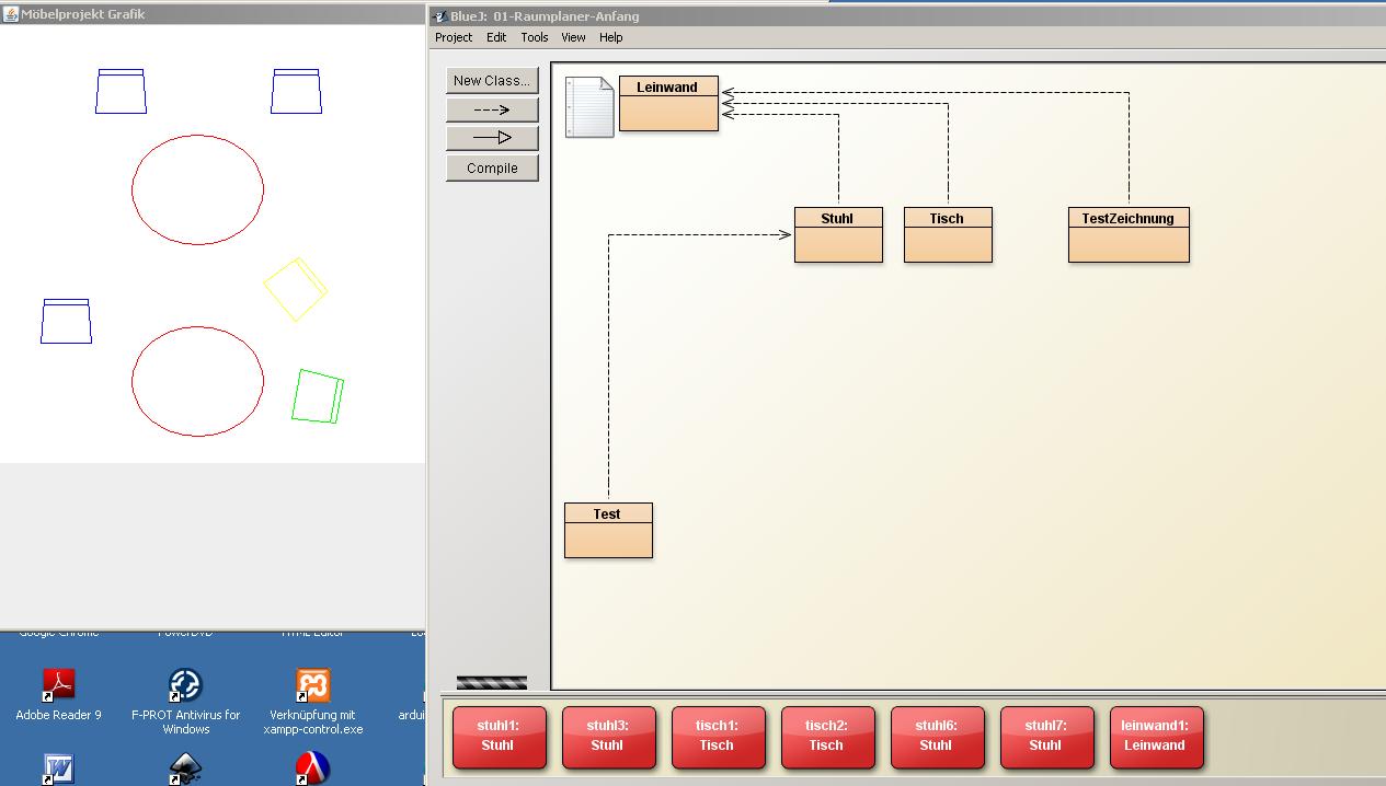 Ein Problem mit BlueJ ist, dass wenn ein Objekt auf der Leinwand ist und dann gelöscht wird, es auf der Leinwand bleibt und nicht wieder entfernbar ist.